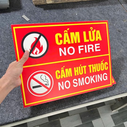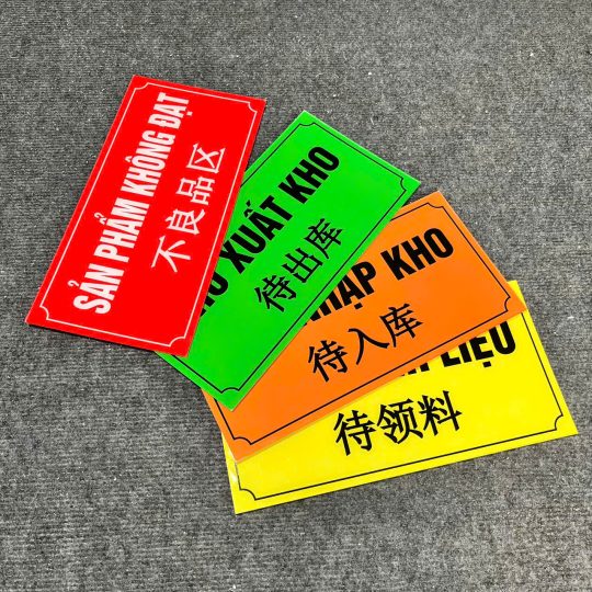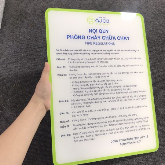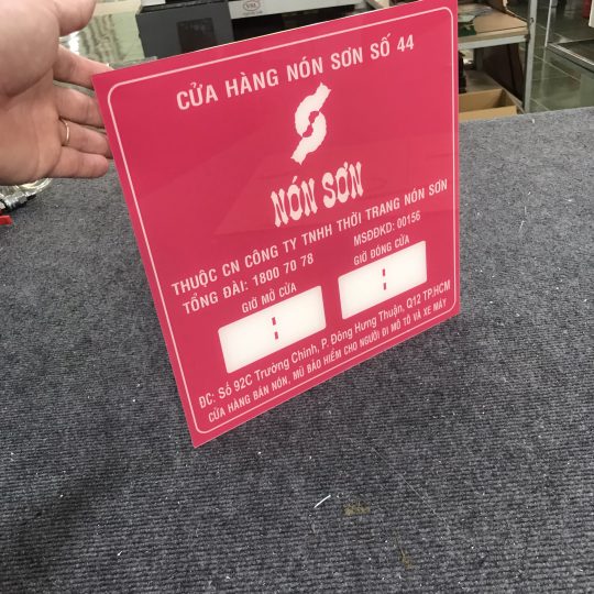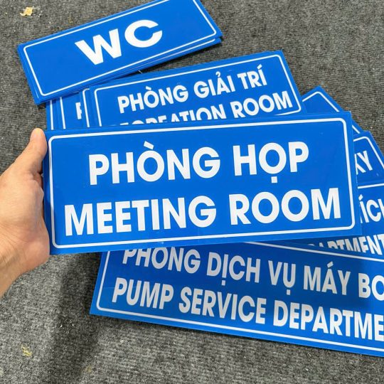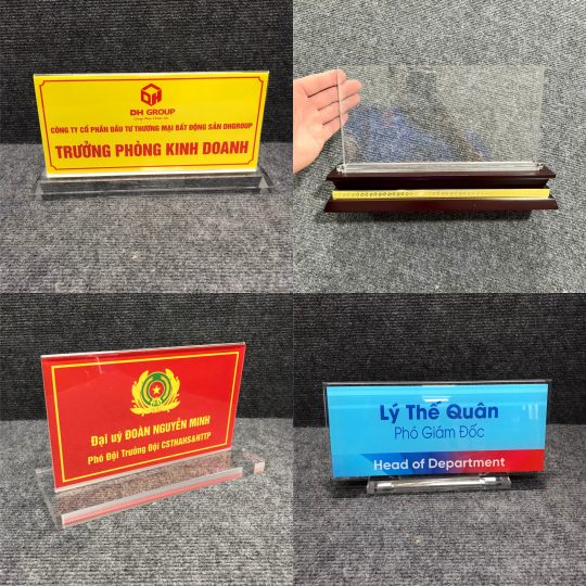 Thường sử dụng dạng bảng mica để bàn hoặc biển gắn cửa phòng.