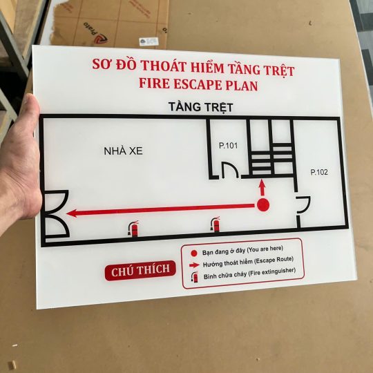 Thông báo vị trí các thiết bị, dụng cụ PCCC như: bình chữa cháy, hộp cứu hỏa, lối thoát hiểm…
