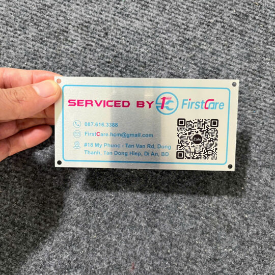 Tư vấn loại nhôm, độ dày, kỹ thuật in hoặc khắc phù hợp.